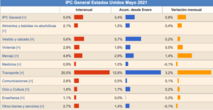 El jueves pasado se conoció que el ritmo de inflación en la principal economía del mundo fue el más elevado desde septiembre de 2008, con un avance de 5% interanual (más alto que el 4,7% estimado) en el quinto mes del año.